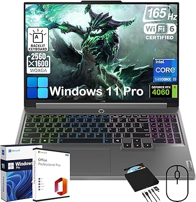 Lenovo Legion 5i Gaming Laptop - wOffice Lifetime & Free CDDVD Drive, Intel 24-Core i9-14900HX, 16 165Hz Display, GeForce RTX 4060, Backlit KB, Win 11 Pro, wAccessories 32GB DDR5 RAM | 1TB SSD